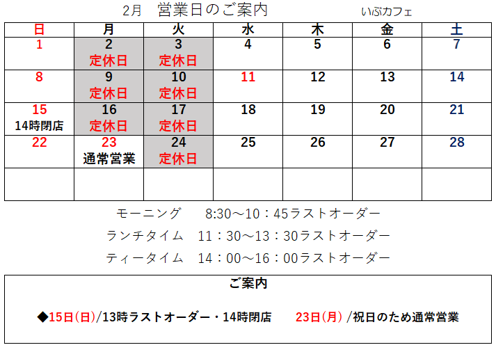 ※その他、臨時休業の際はお知らせいたします。