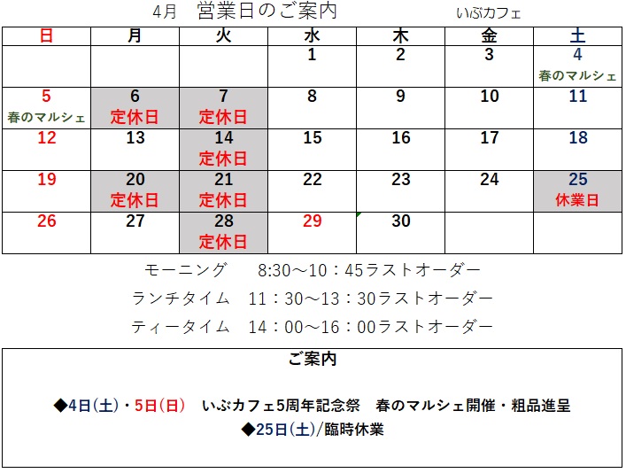 ※その他、臨時休業の際はお知らせいたします。